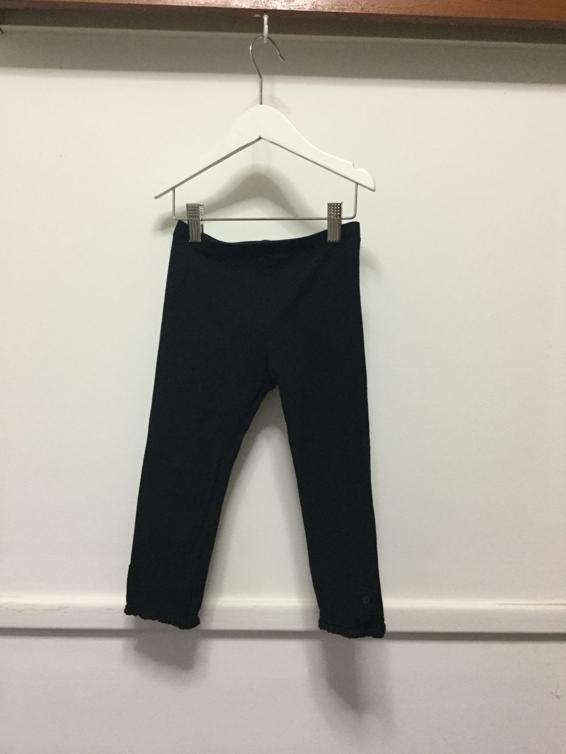 3/4 length black leggings, button and frill detail at bottom of leg, size 6, target brand. Excellent as new condition.