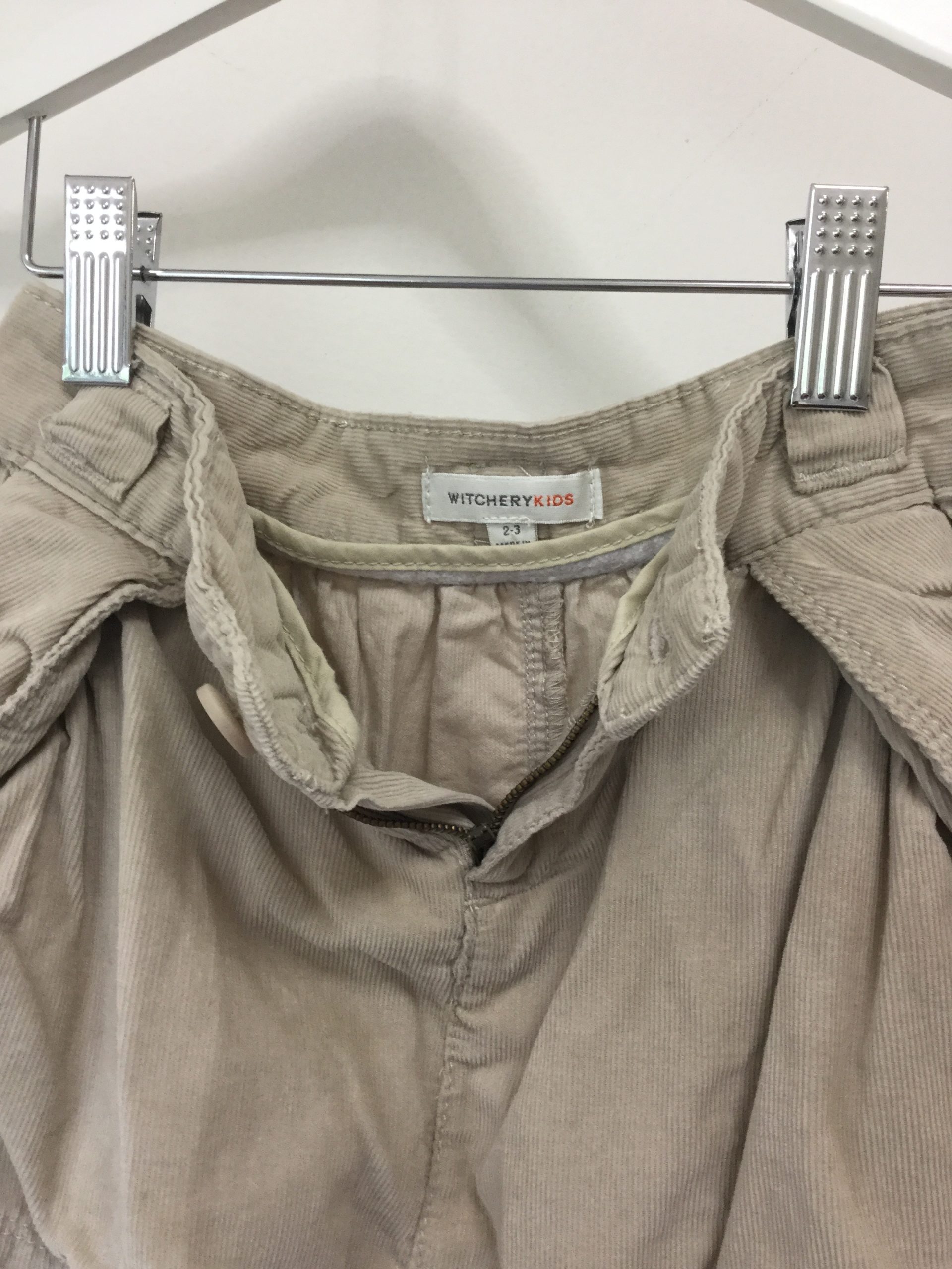 Beige Witchery kids corduroy skirt, size 2-3. Zip and button fly, great condition.