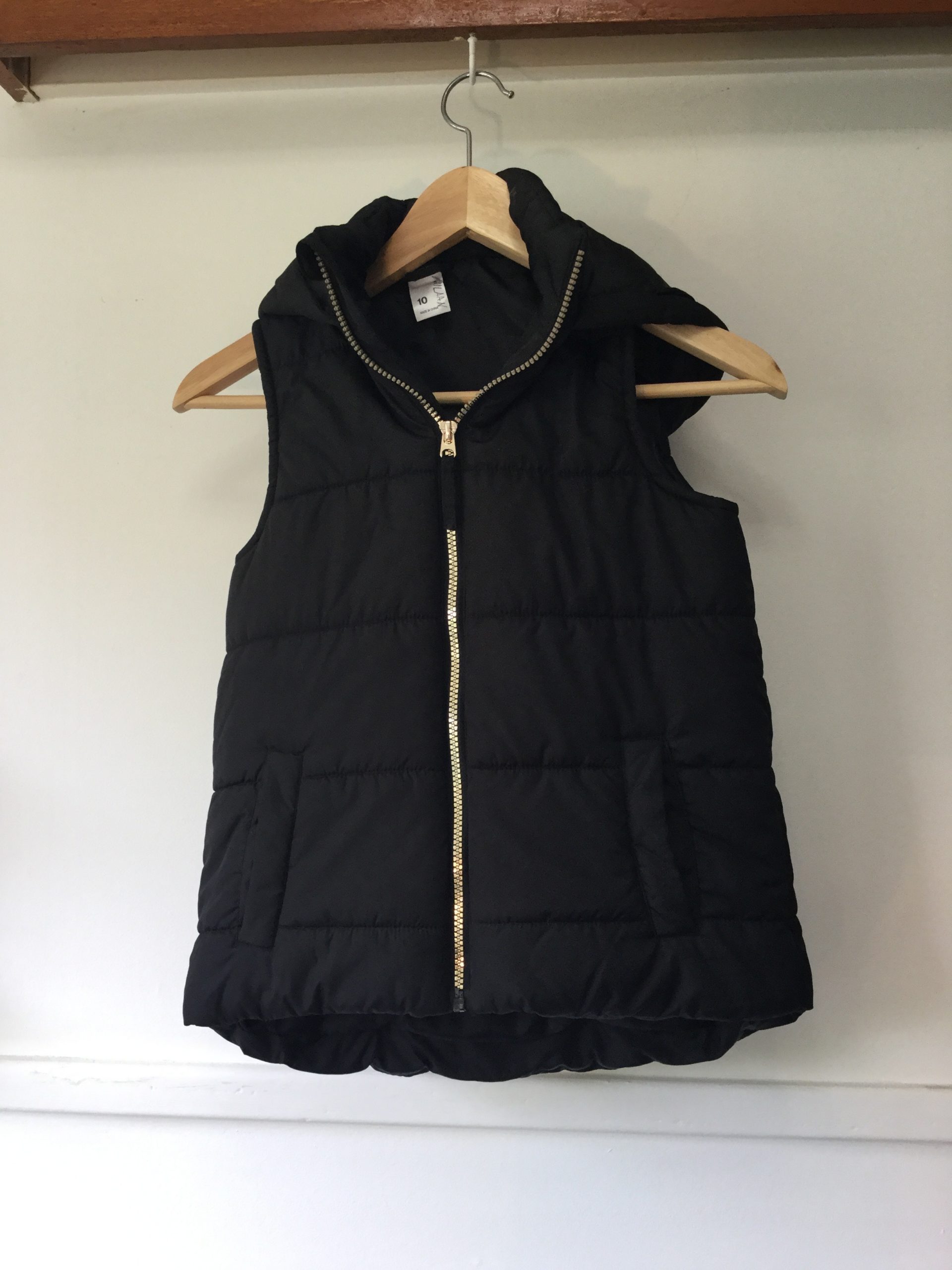Black hooded puffer vest, zip up, size 10, Anko brand (Kmart). The tag says girls but this can def suit either boys or girls. Perfect, brand new condition.
