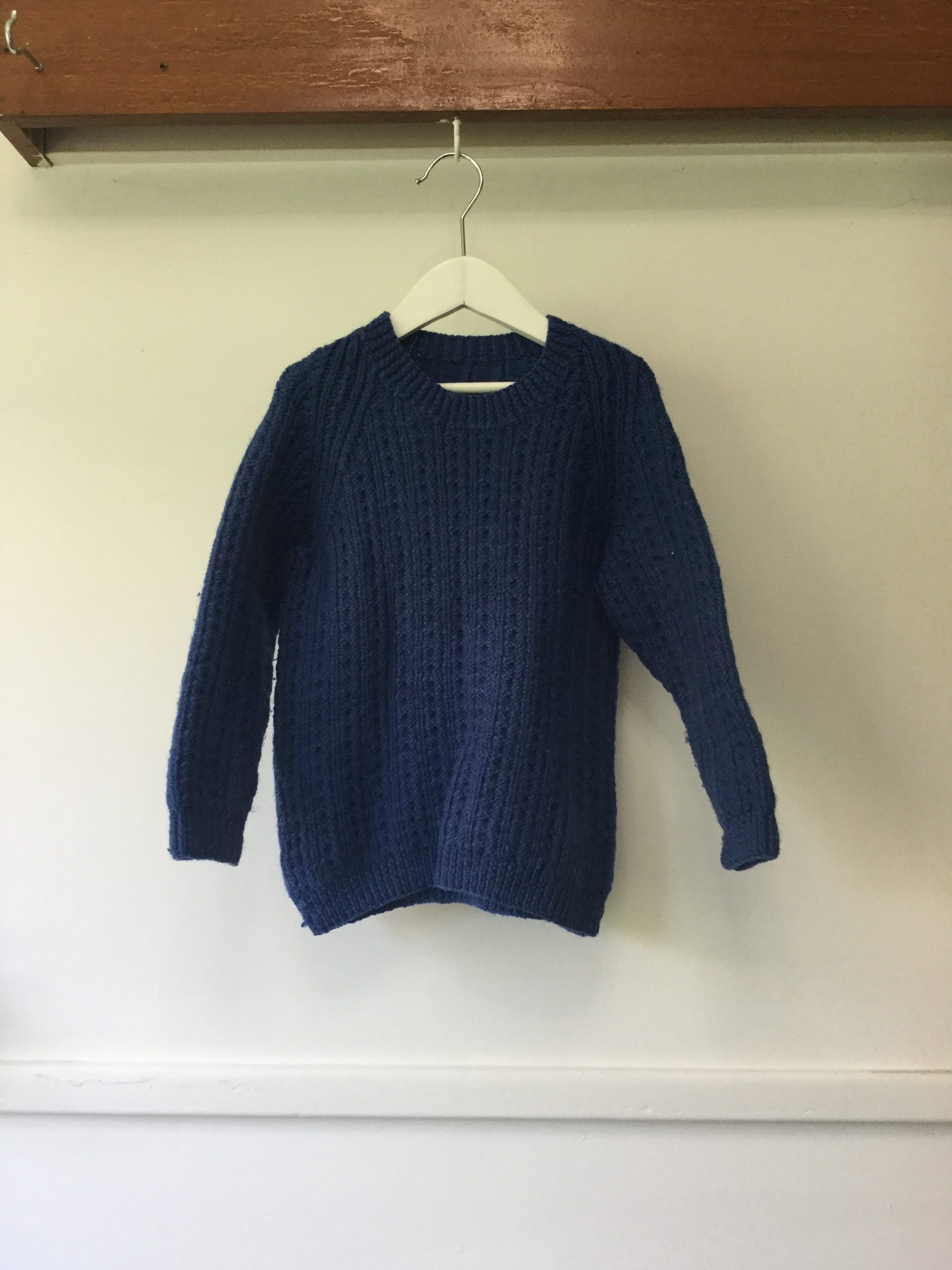 Dark blue, hand knitted woolen jumper, size 3 in excellent condition.