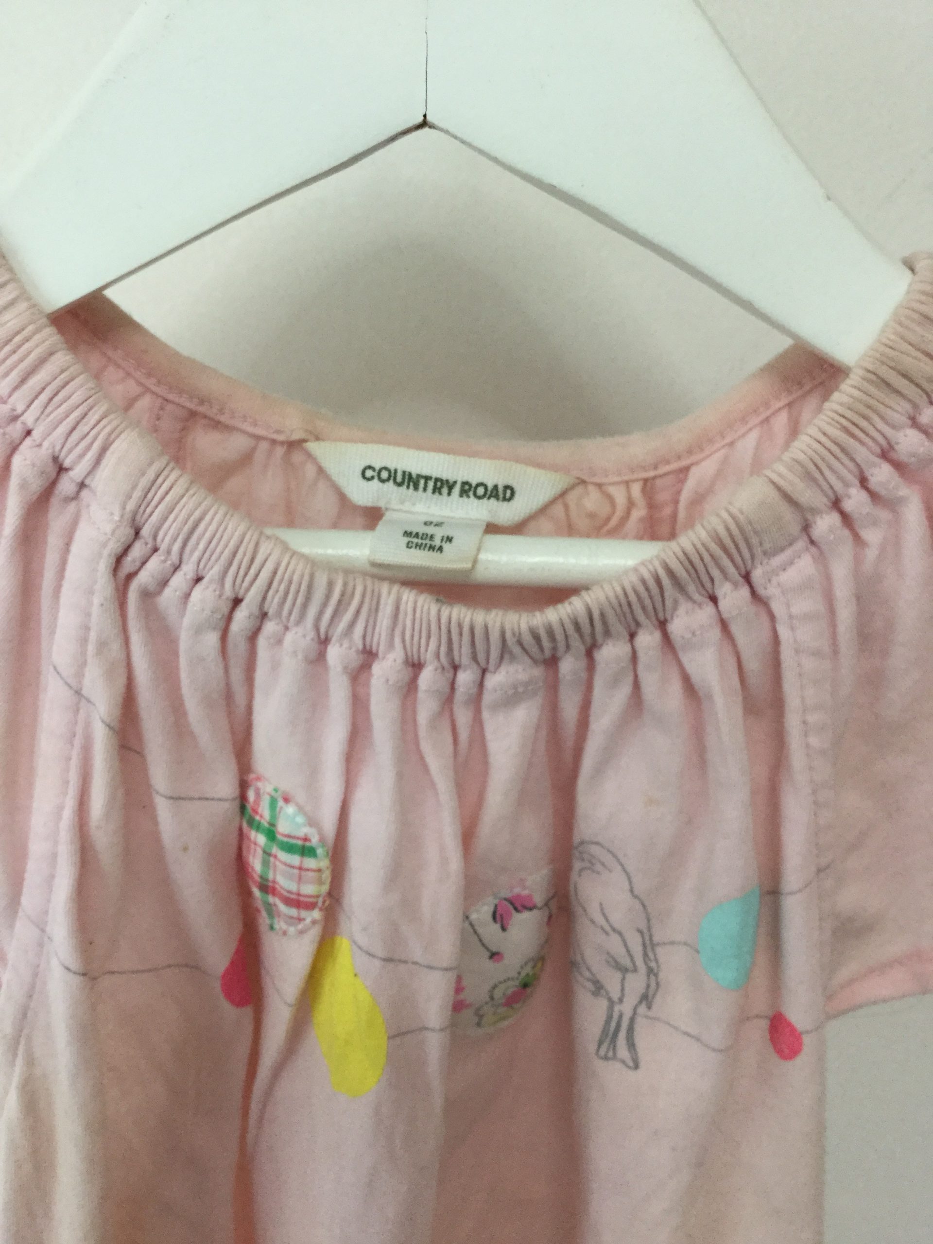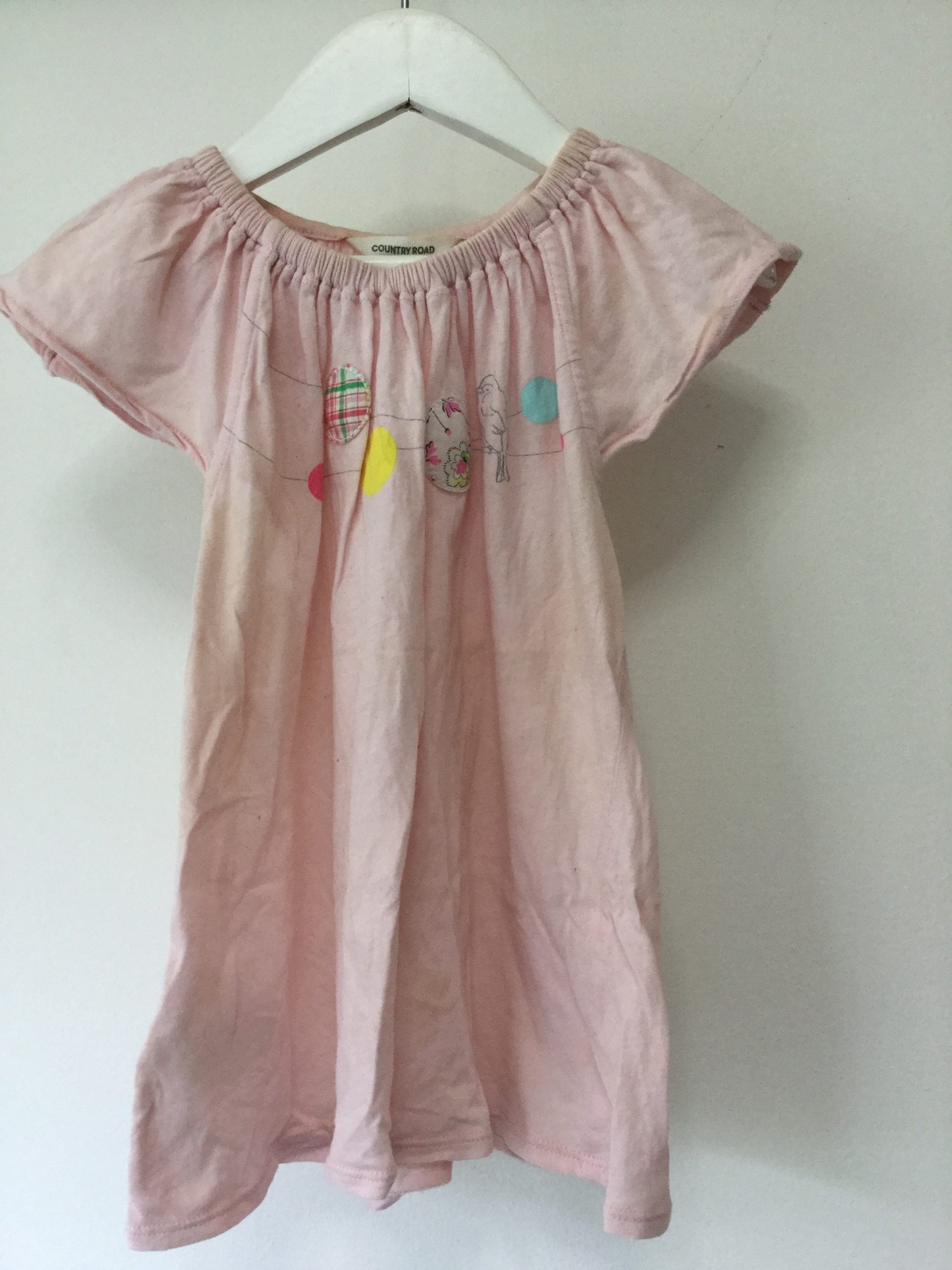 Pale pink country road flared t-shirt with elastic neckline, size 2. Nice soft 100% cotton, some faint marks.
