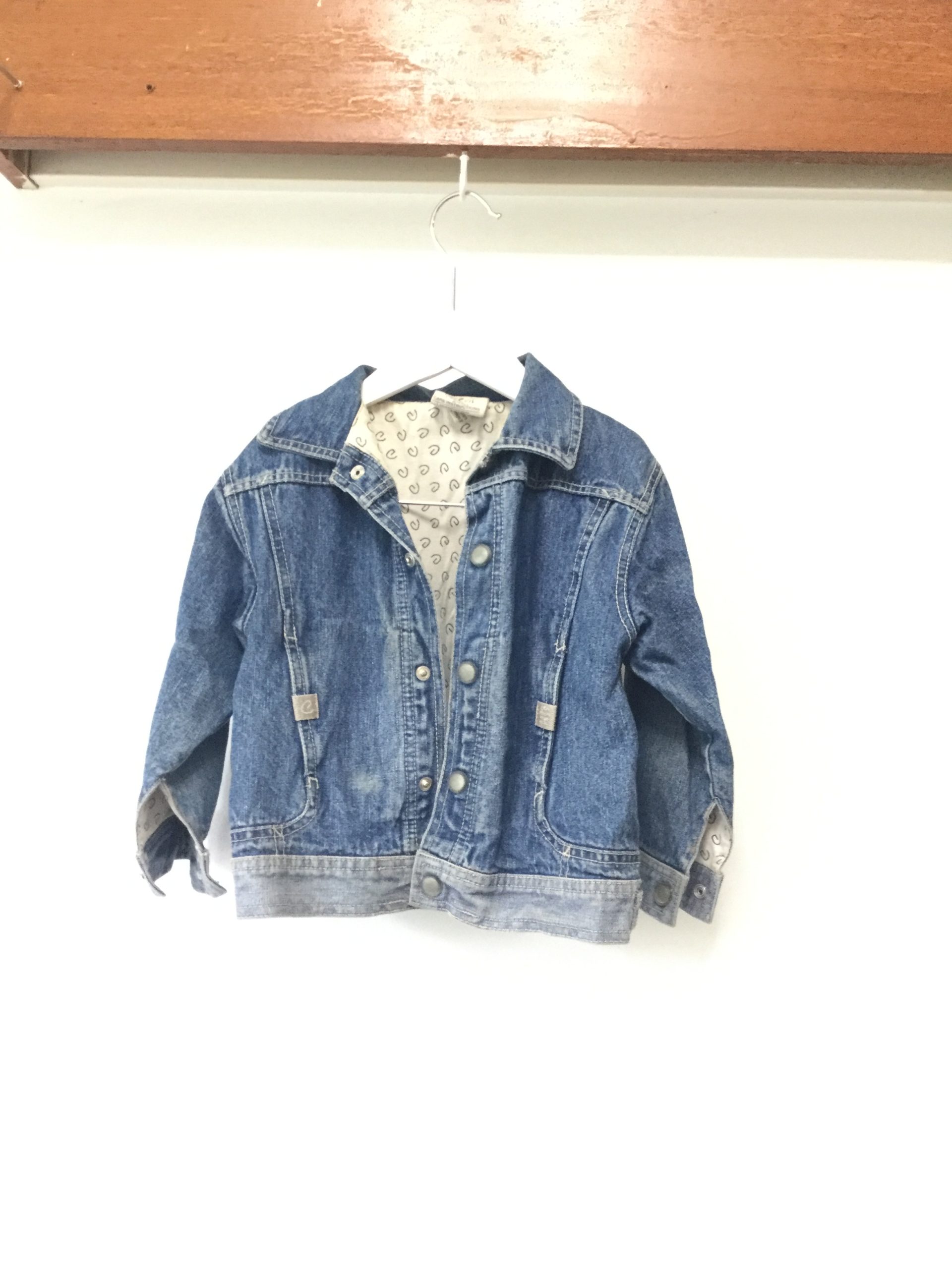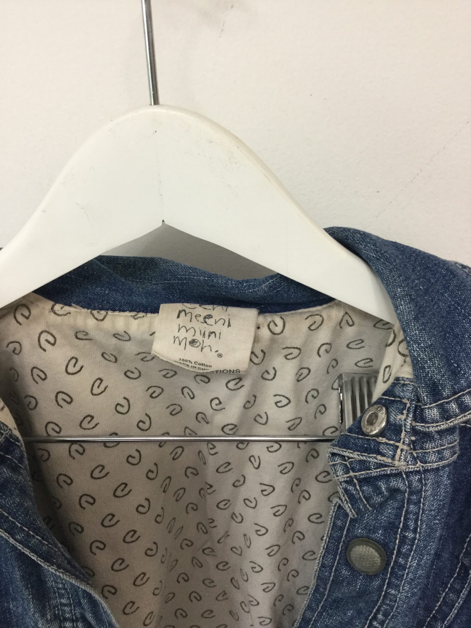 Eeni meeni miini moe casual blue denim jacket. It is size 3 however this would easily fit a 5 year old as it’s a loose style. The sleeves are mid length and it’s fully lined with soft cotton. Good brand, still in good condition except for one of the press studs is missing from the arm (I actually hadn’t noticed this since it was always worn with these undone. Looks great over dress or skirt.