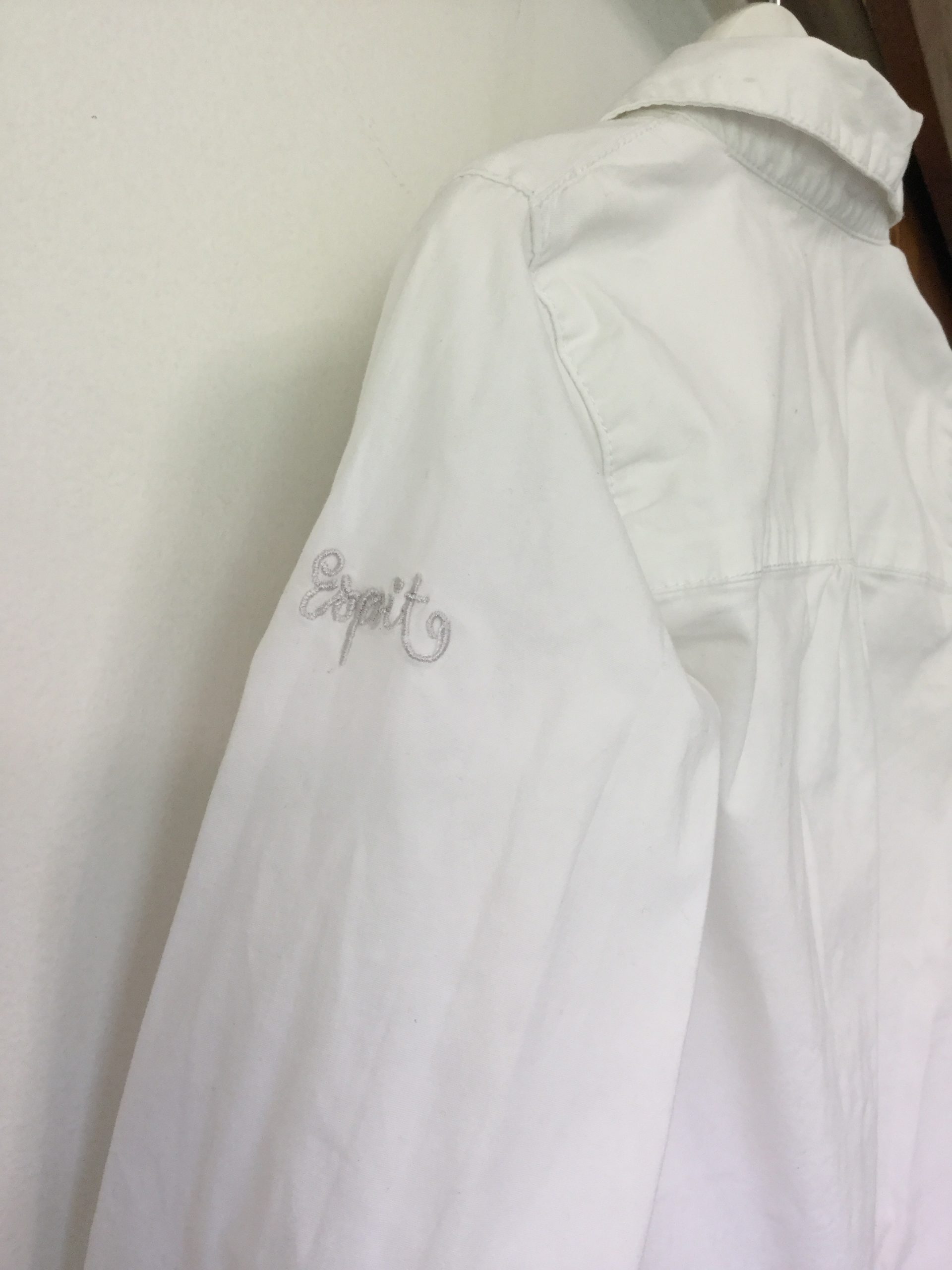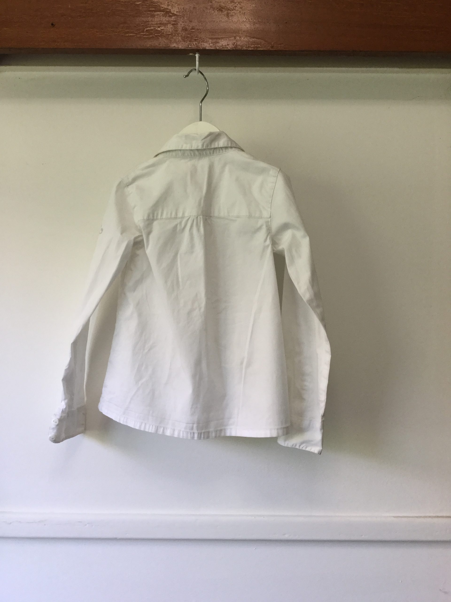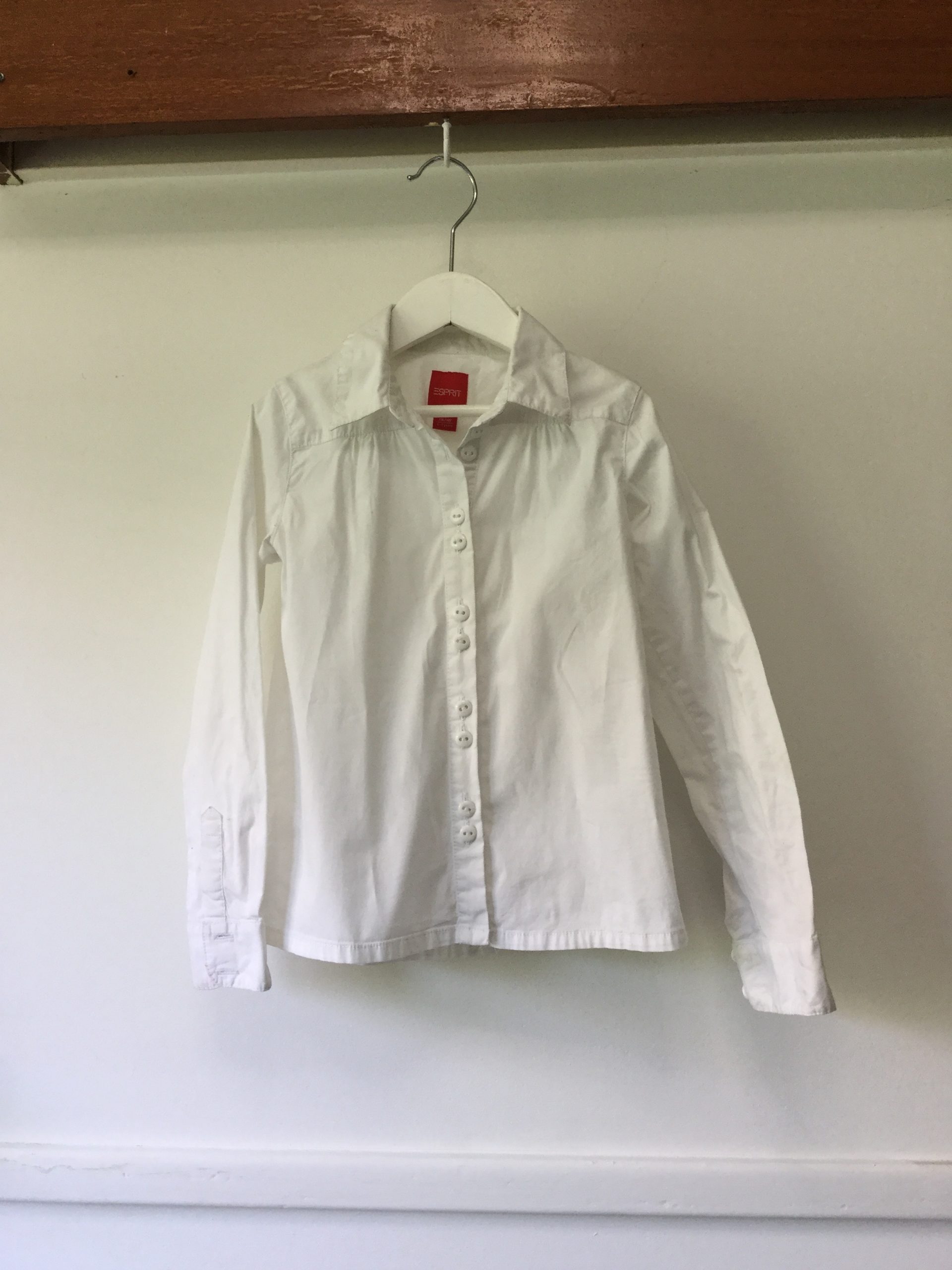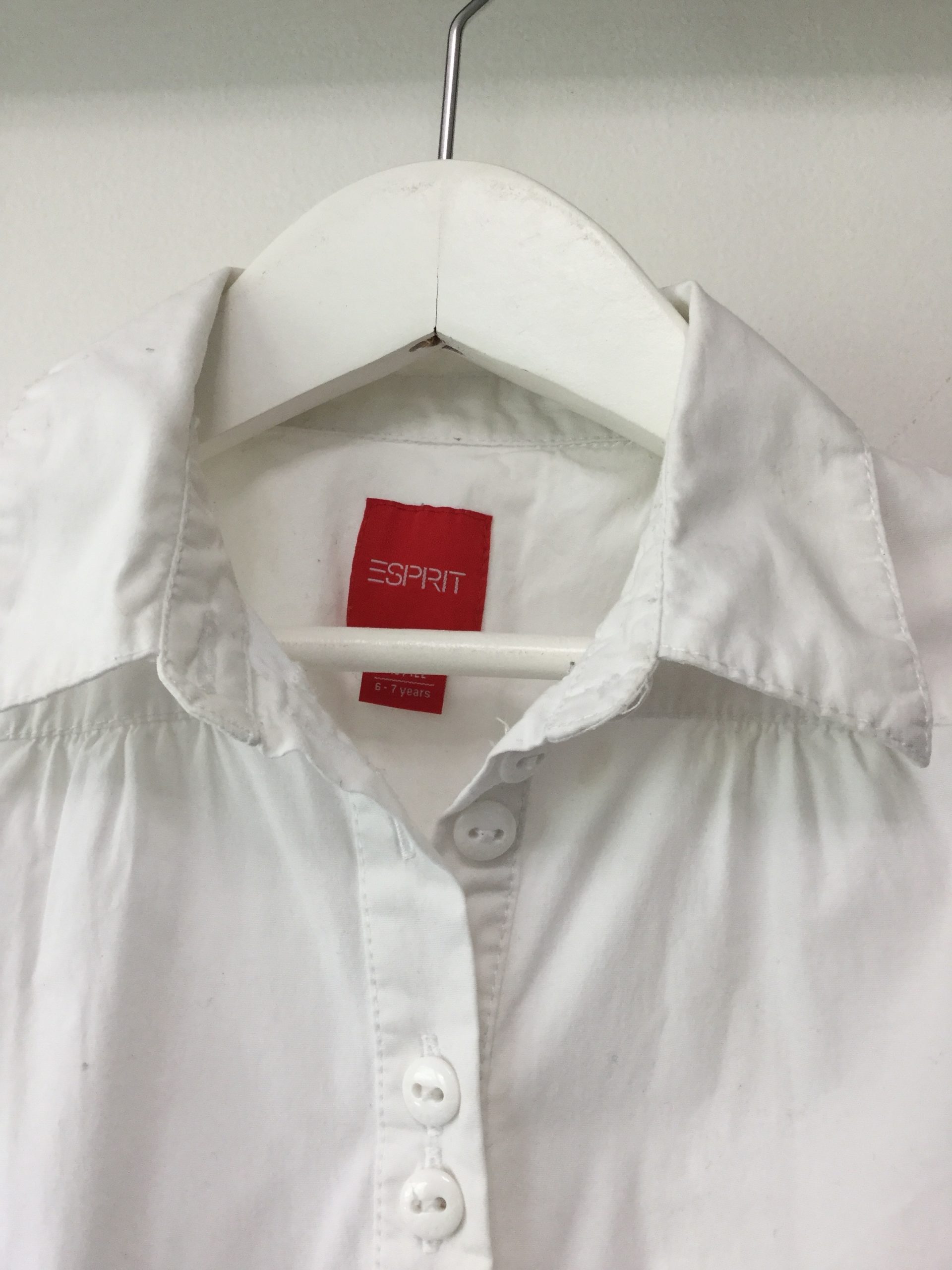 Esprit white button up shirt/blouse, size 6-7. Some faint marks but these are hard to see and could possibly be bleached out.