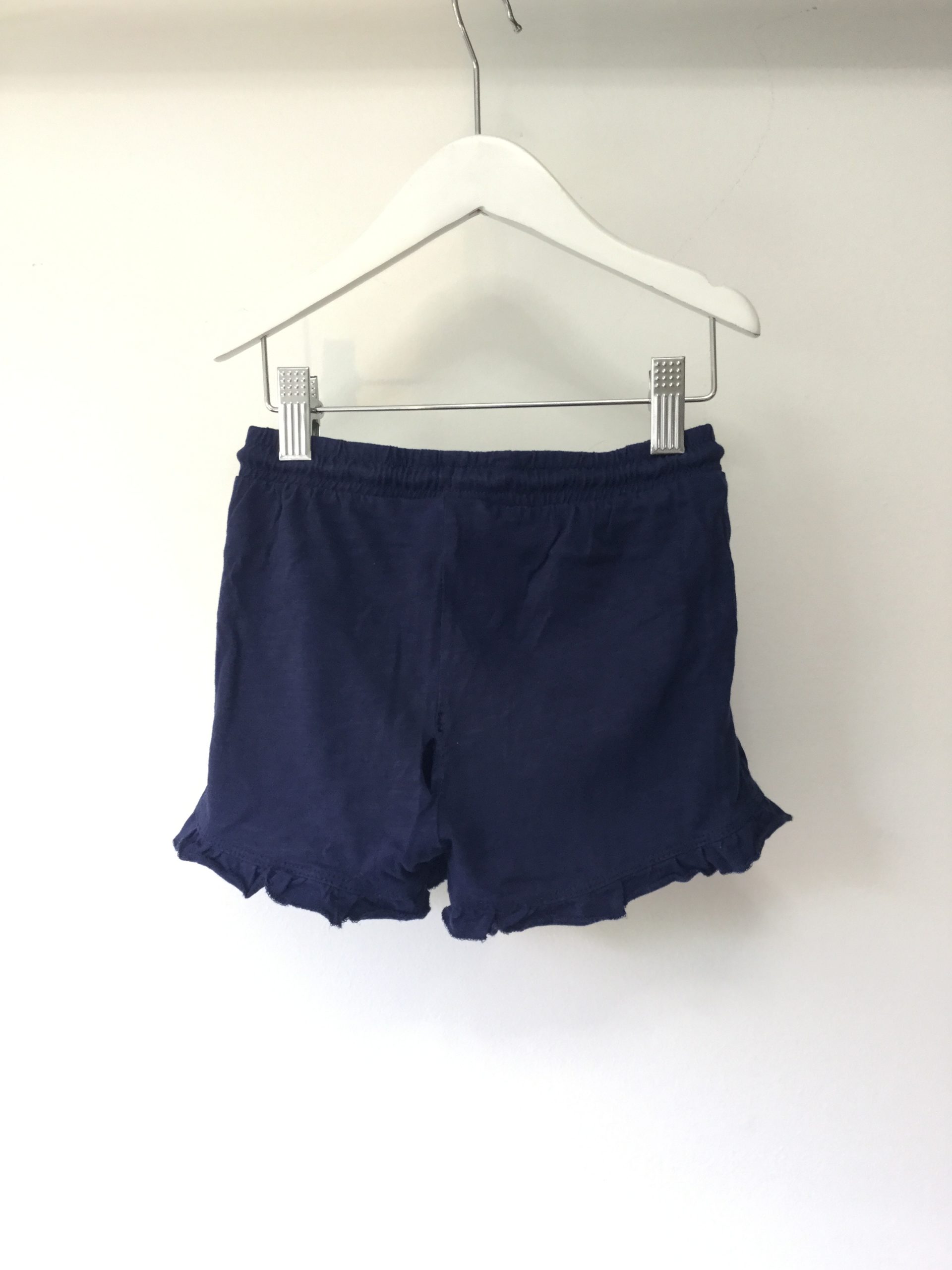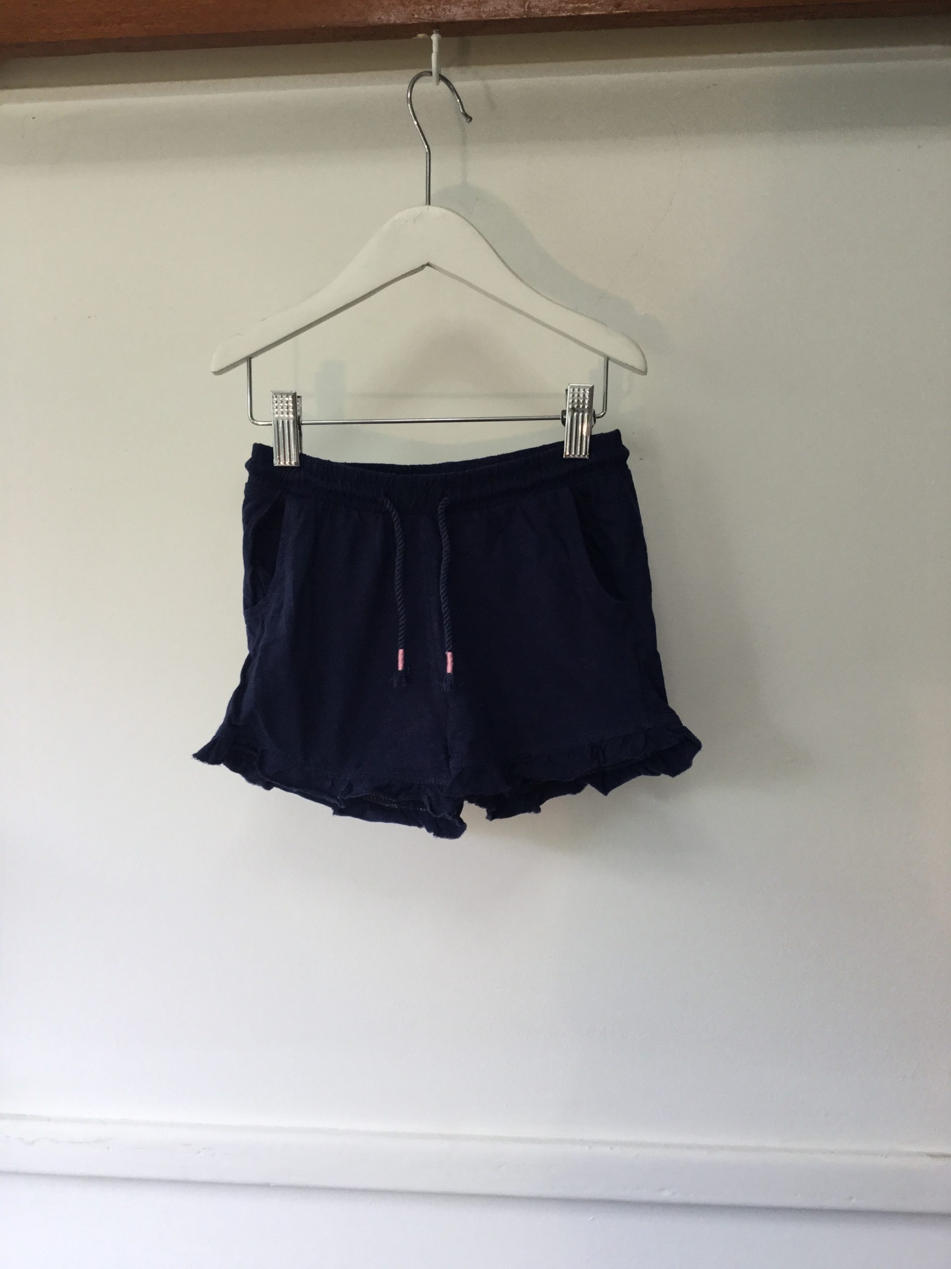 Navy blue cotton shorts with pockets, elastic waist and drawstring, big w brand. The size is 5 however it’s probably more suitable for a 4 year old. The back seam needs some stitching but this would be an easy repair job. Otherwise great condition.
