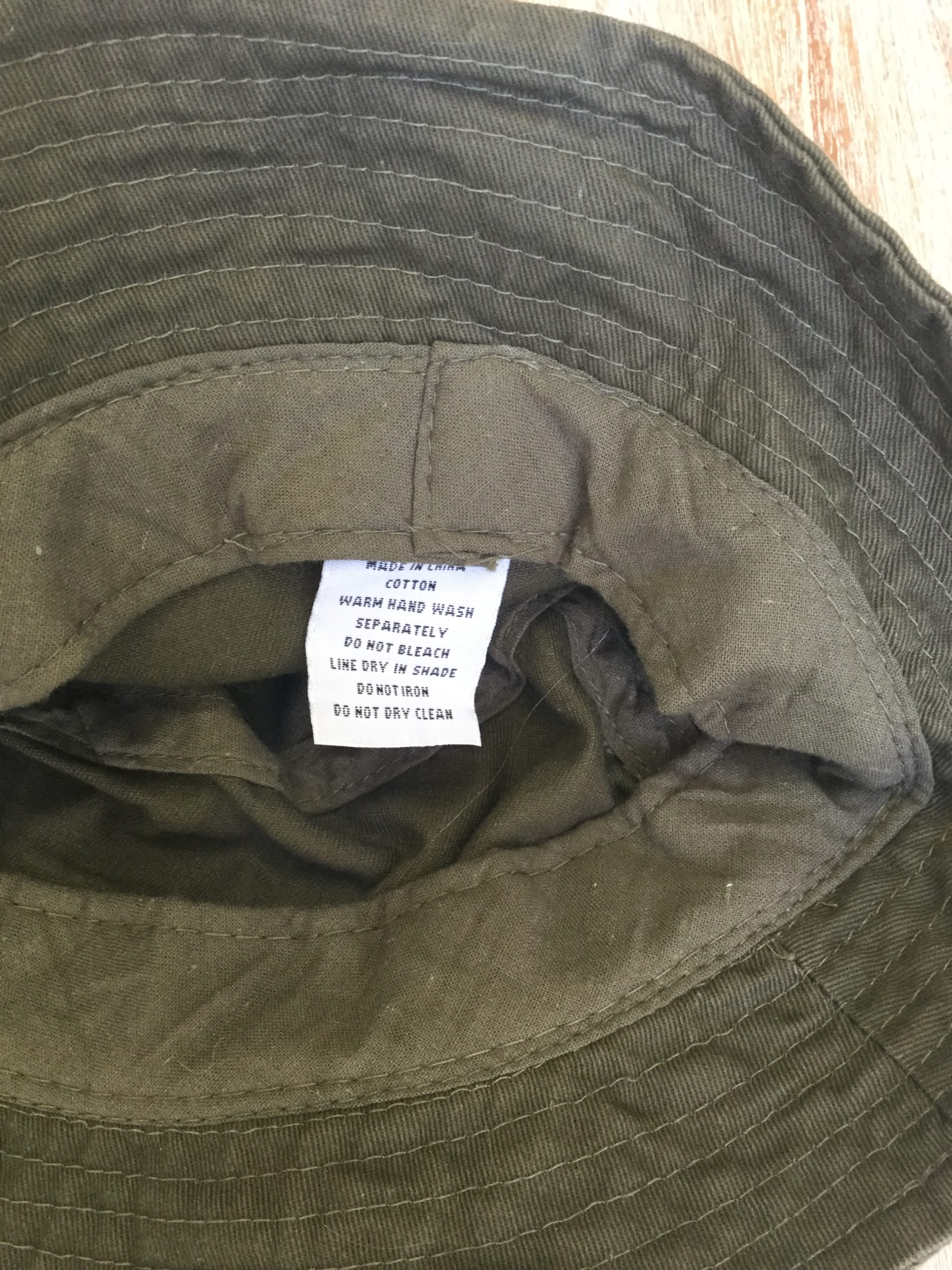Olive green summer bucket hat will suit ages 3-5, 100% cotton, good condition. Unbranded.