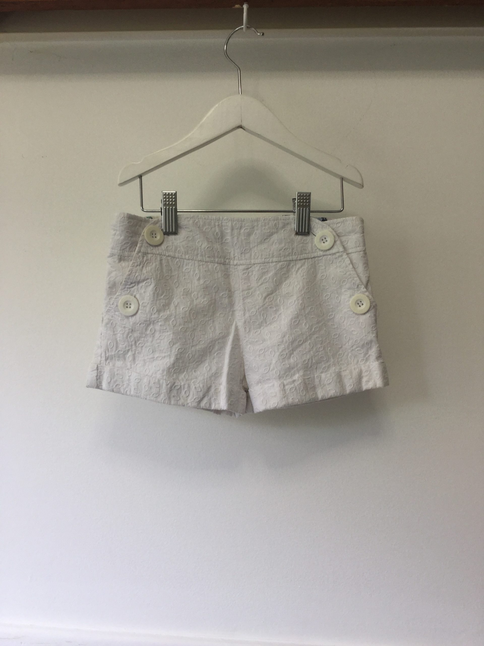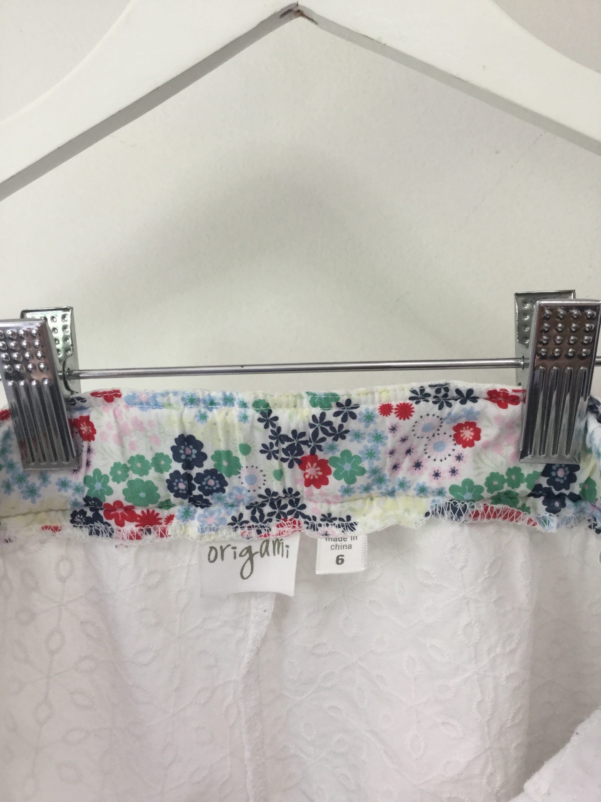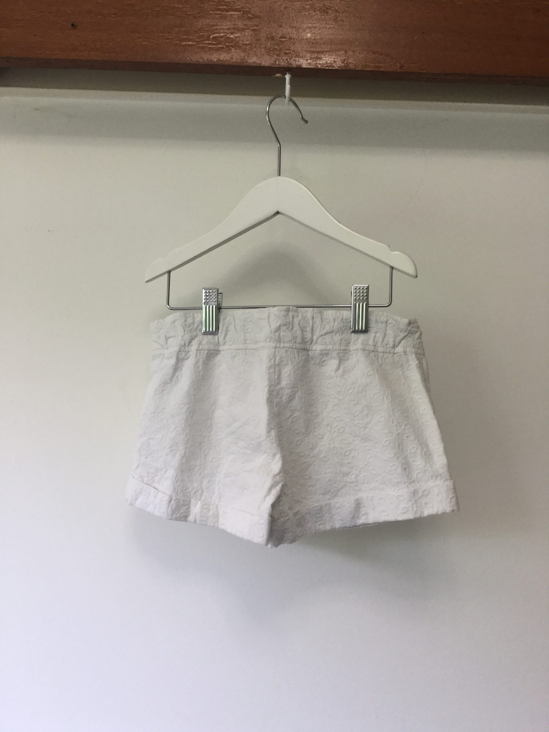 Origami (Myer brand) white embroidered cotton shorts, size 6. These are button fastening at the front and they are also have an internal adjustable elastic waist. Excellent condition.