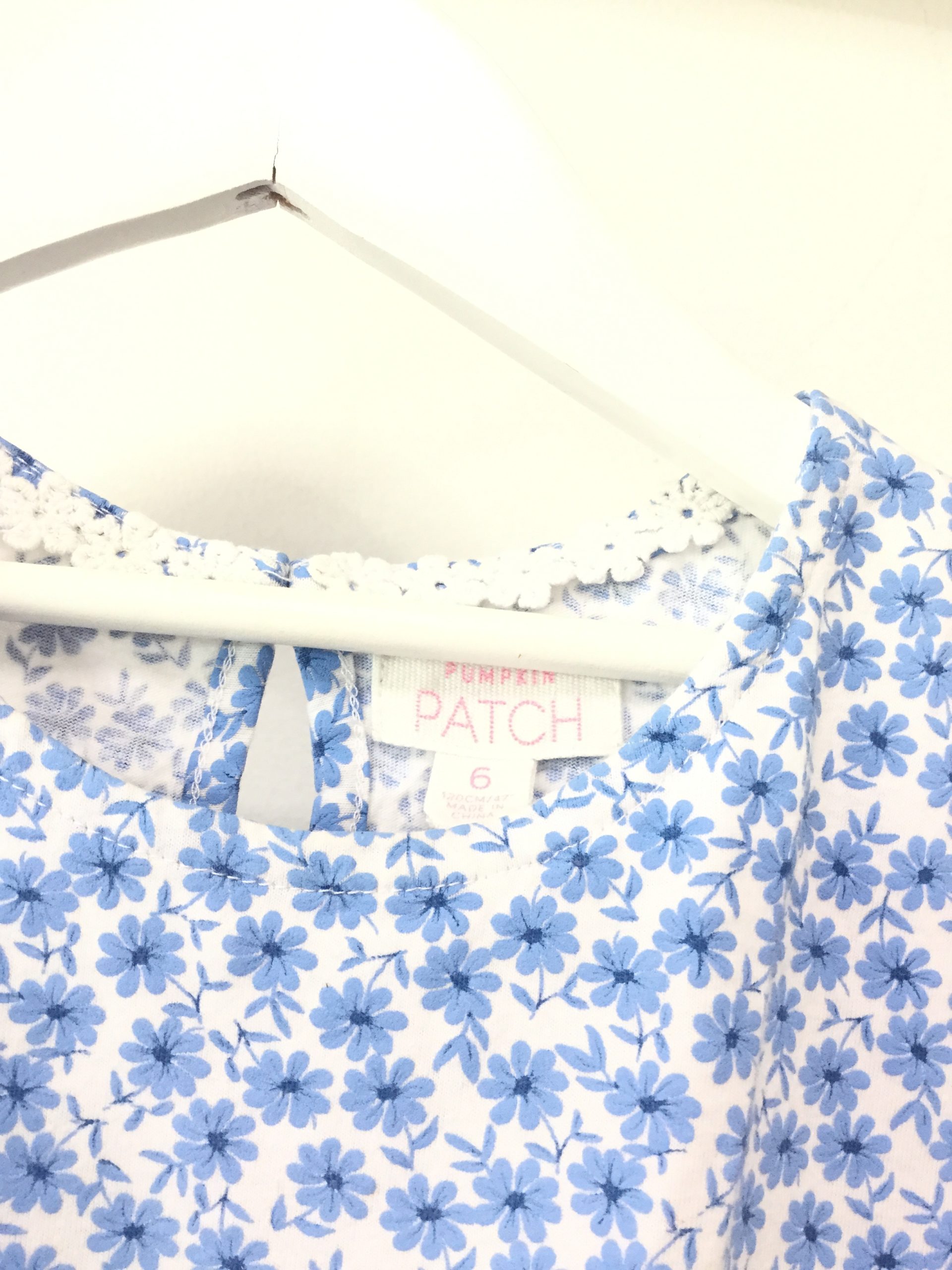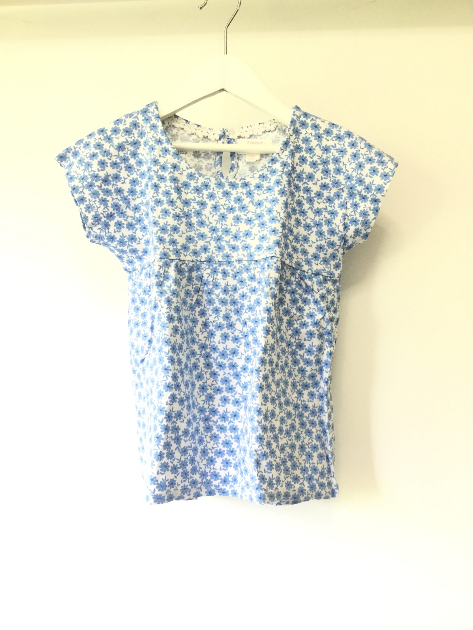 Pumpkin Patch floral blue and white cotton top, size 6 in great condition.