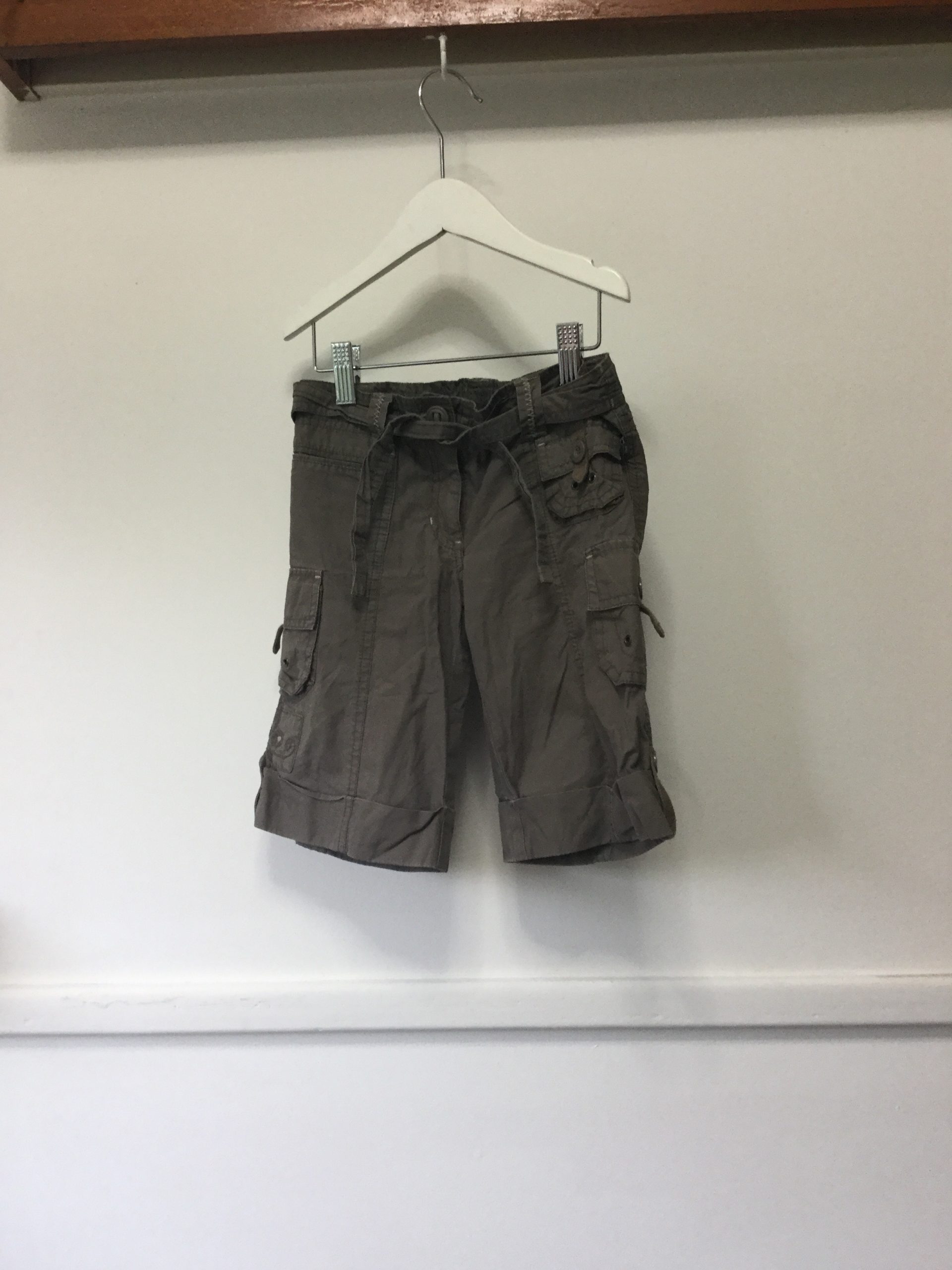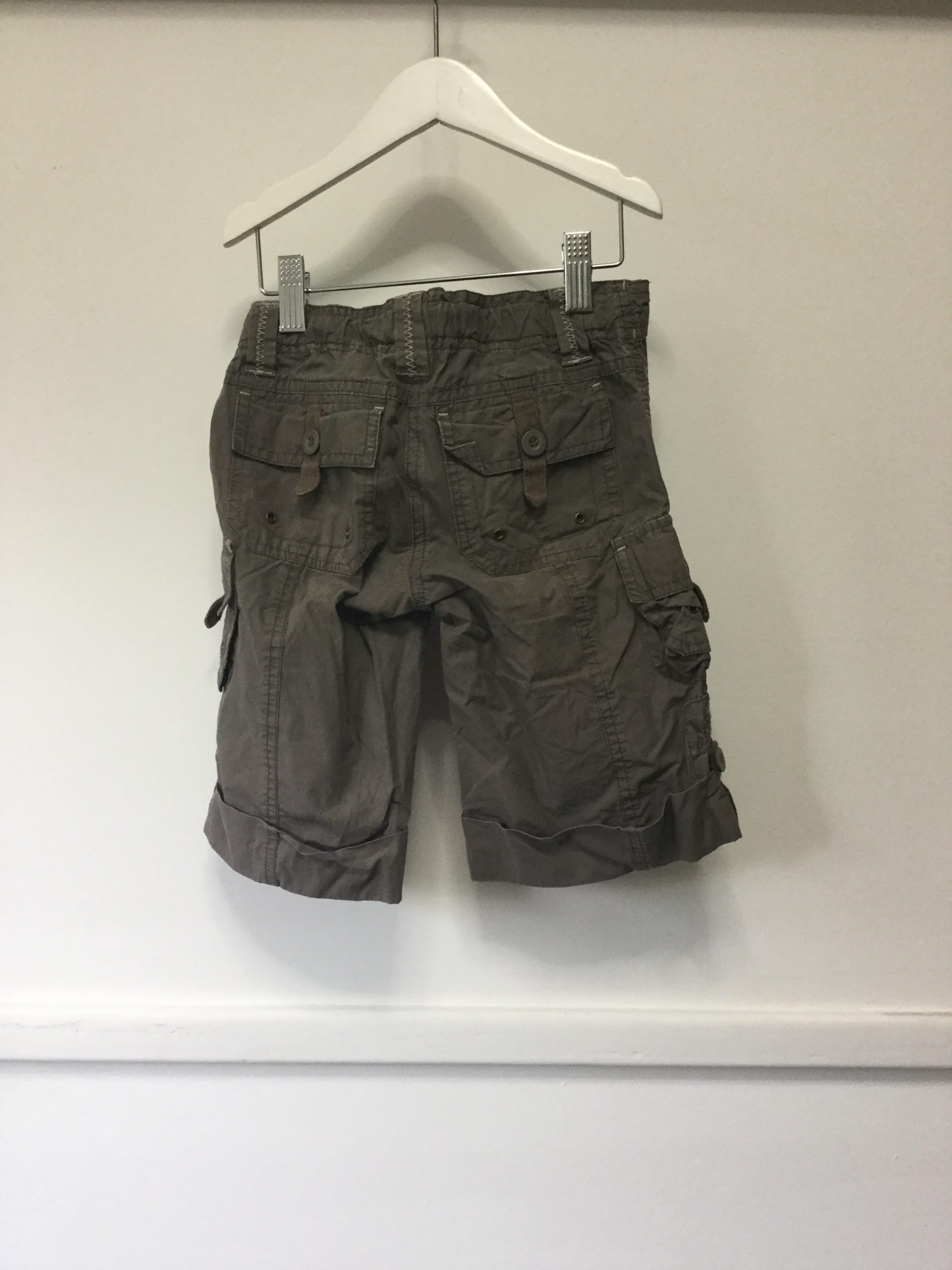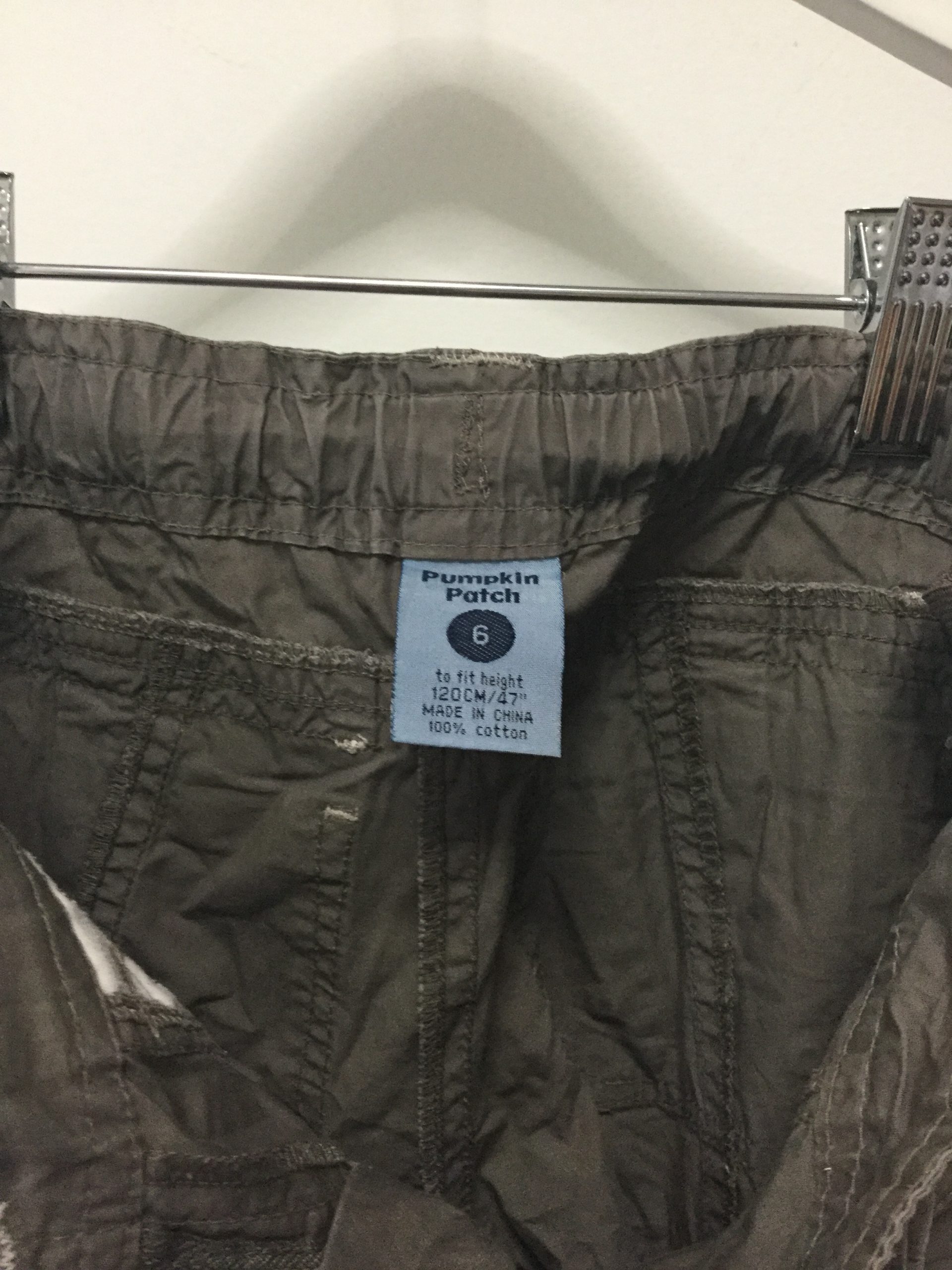 Pumpkin patch khaki cotton shorts size 6. Zip and button closure with inner adjustable elastic waist. Long length shorts, ok condition apart from some pink paint marks. Would be fine for school.