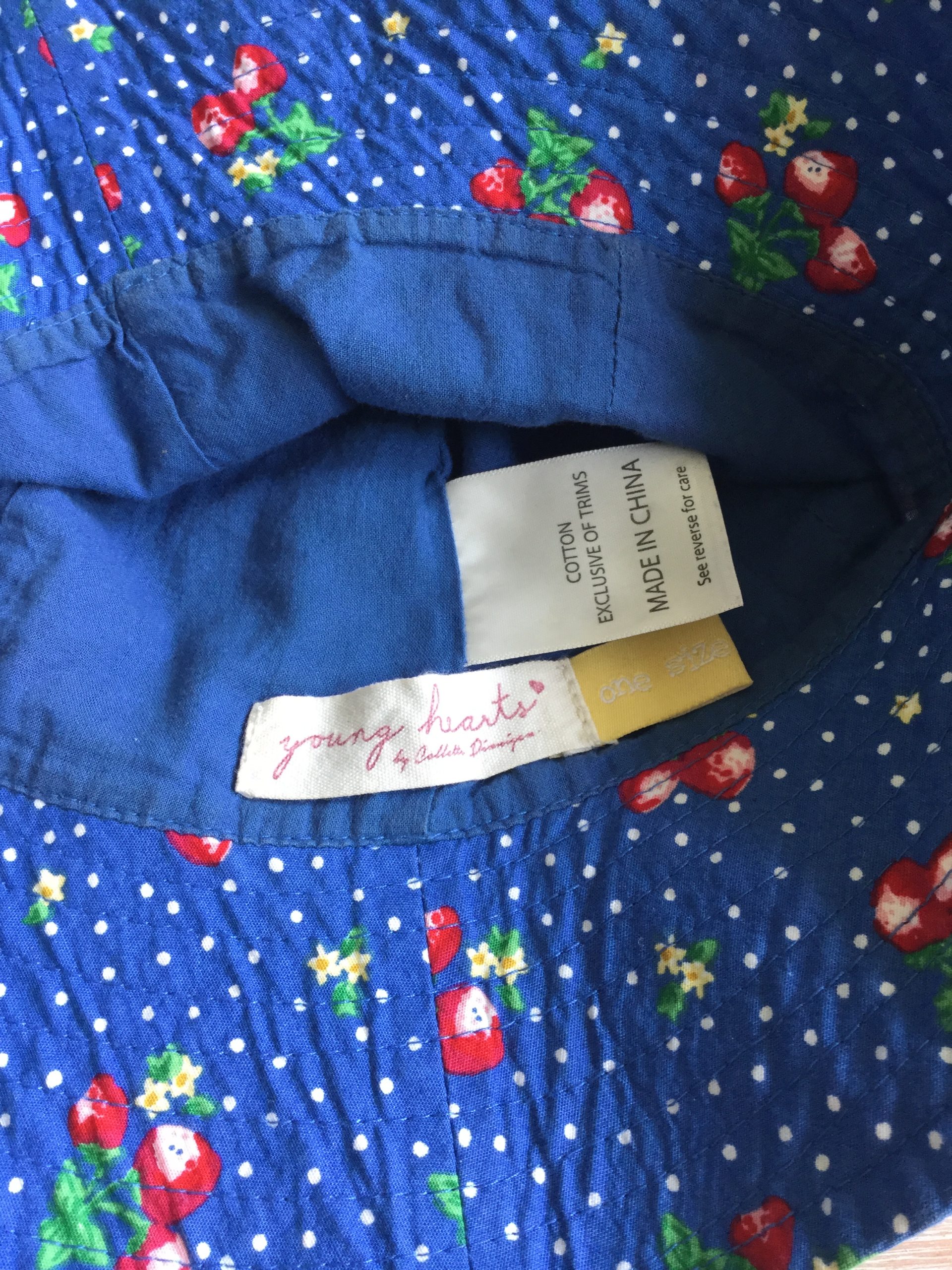 Young hearts by collette Dinnigan (Aldi) strawberry print sun hat. Excellent condition and would fit a 4-6 year old.